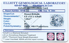 1.00ct sample results (E color), using Gemex